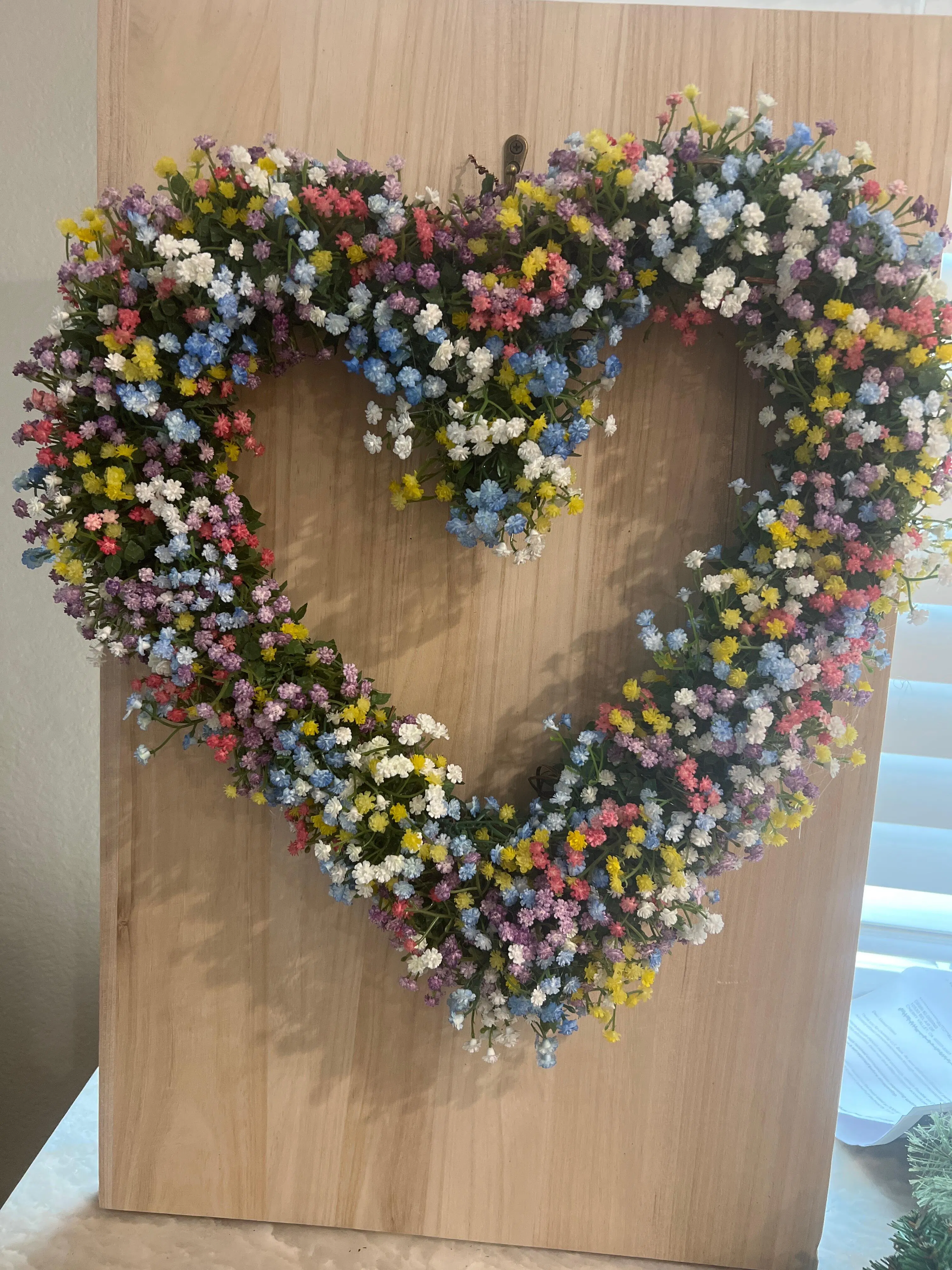 I like the size of this heart shaped grapevine wreath. Local shops around me were not carrying the heart shaped wreaths ( only very small ones). The only negative was the medal wires are very thick on this wreath and show all over the wreath. I wrapped my wreath with green ivy garland to hide all the medal. The project ended up being very beautiful and I would order it again!
