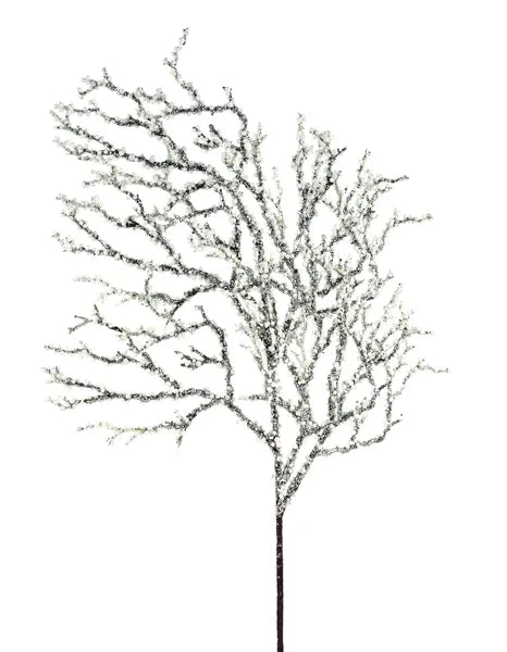 20.5" Twig Spray covered in tiny glitter styrofoam beads. Beautiful accent for your Christmas and winter wreaths, trees, centerpieces, etc.