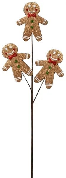 25" Cute Glitter Gingerbread Men Spray with three gingerbread men with glittery look. These picks are a perfect accent to your whimsical fun Christmas wreaths and centerpieces!