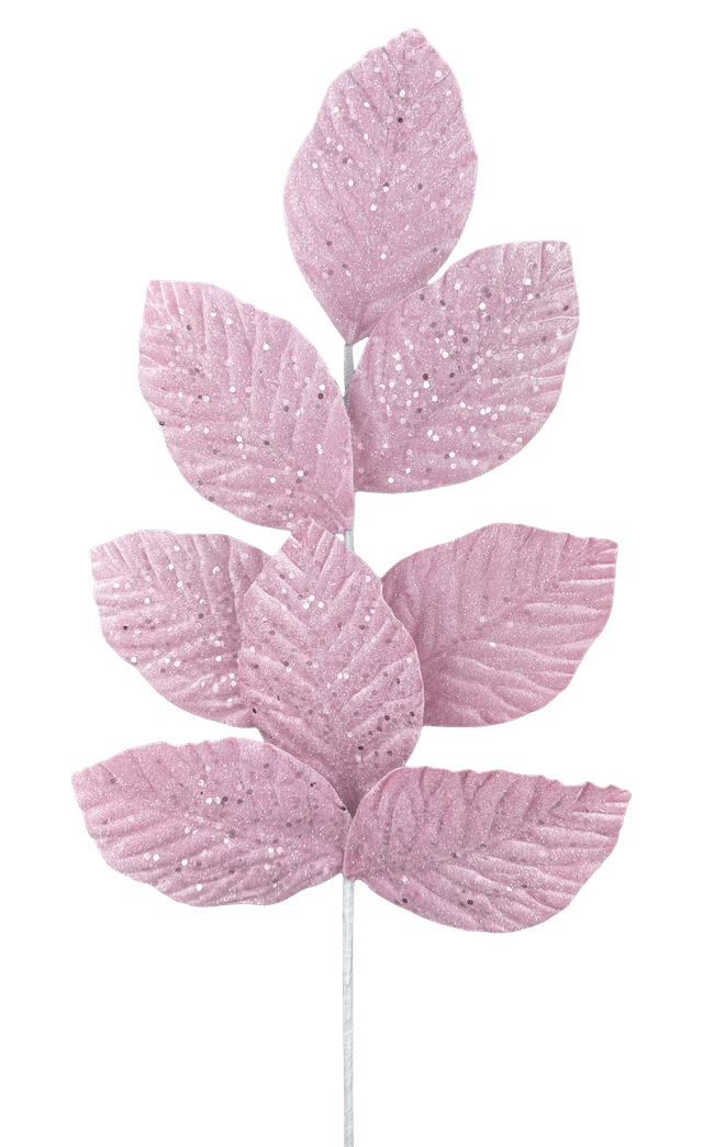 28" Decorative Magnolia Leaf Spray in glittery pink. Add to your Christmas Wreaths, swags, trees, centerpieces, etc.