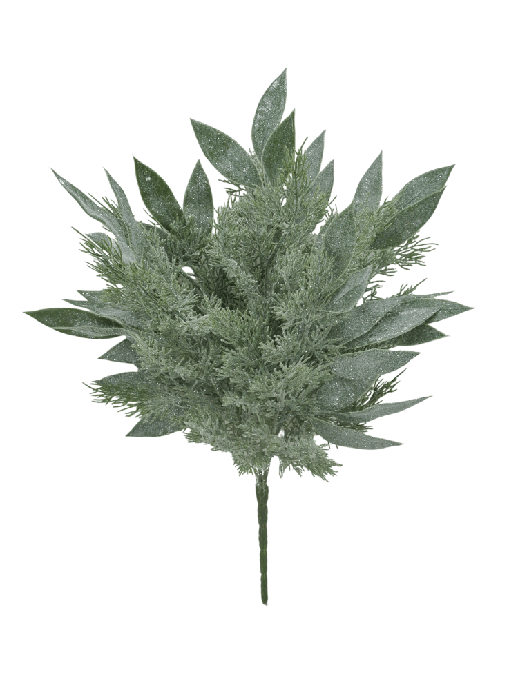 21" Cypress/Olive Leaves mixed bush. This greenery is a great filler for anytime wreaths and floral pieces! Use the entire spray, or cut off stems to use separately.
