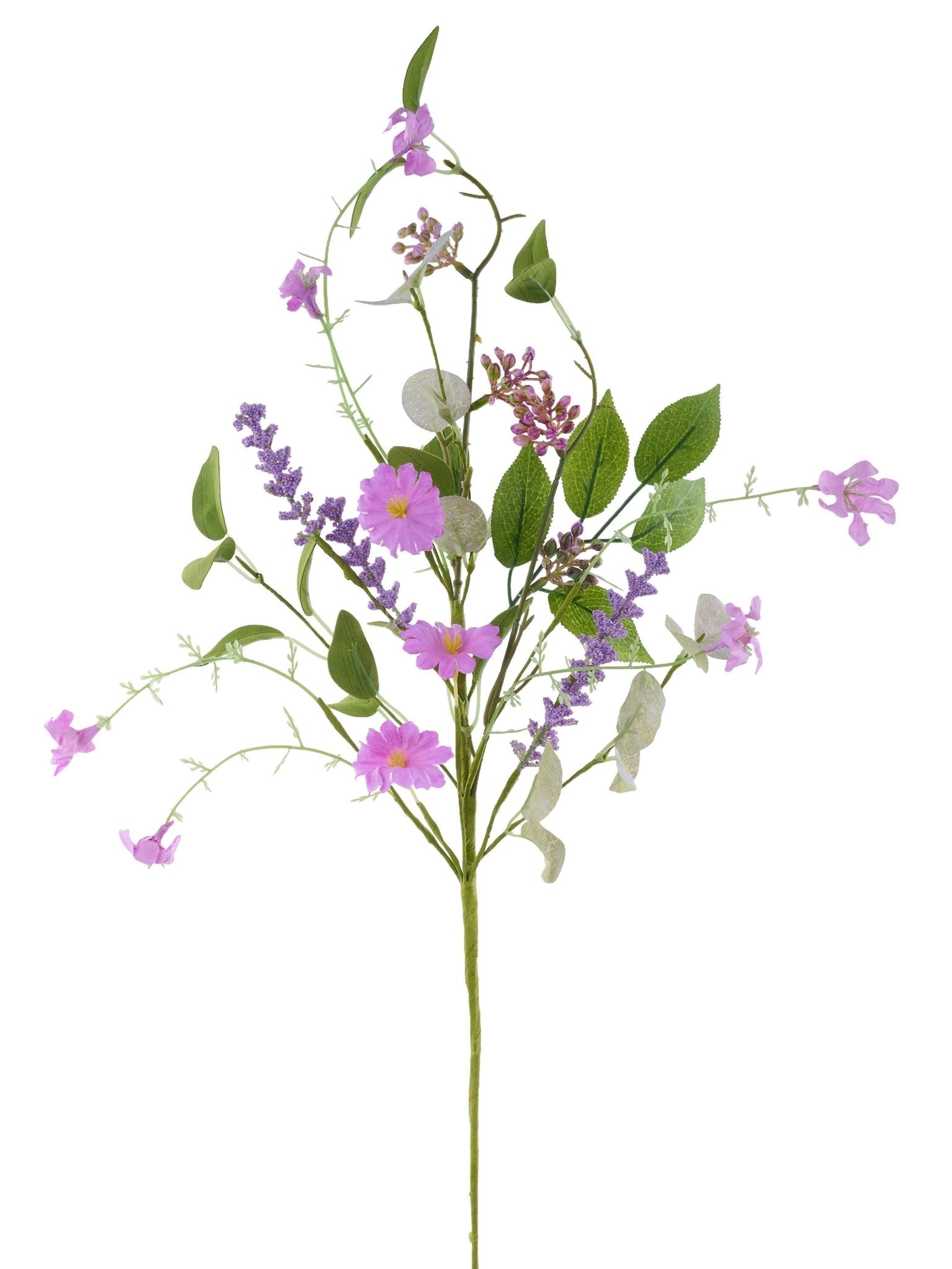 22" spray with small lavender flowers, eva foam green leaves, and small lavender beads. Mix into your wreaths and florals to add a touch of color. Use the entire spray, or cut off stems to use separately.