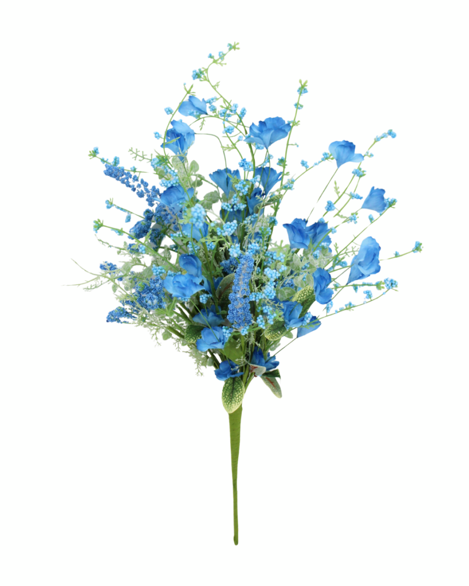 22" Blue Wildflower Spray with a mix of blue flowers, berries, and leaves. Use to fill in your spring wreaths and florals!