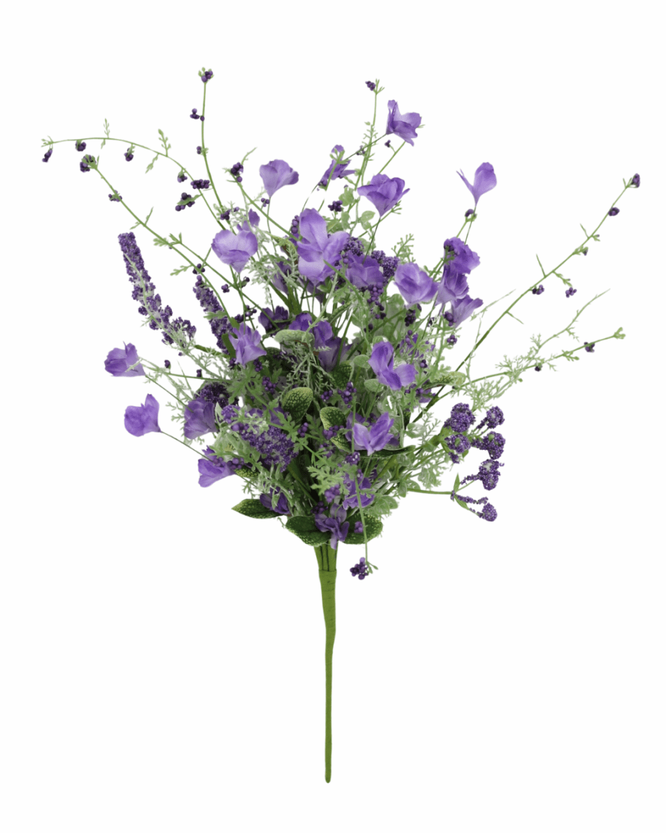 22" Purple Wildflower Spray with a mix of purple flowers, berries, and leaves. Use to fill in your spring wreaths and florals!