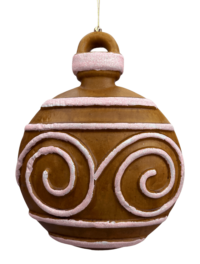 13" Gingerbread Swirl/Stripe Ornament: Brown/Pink