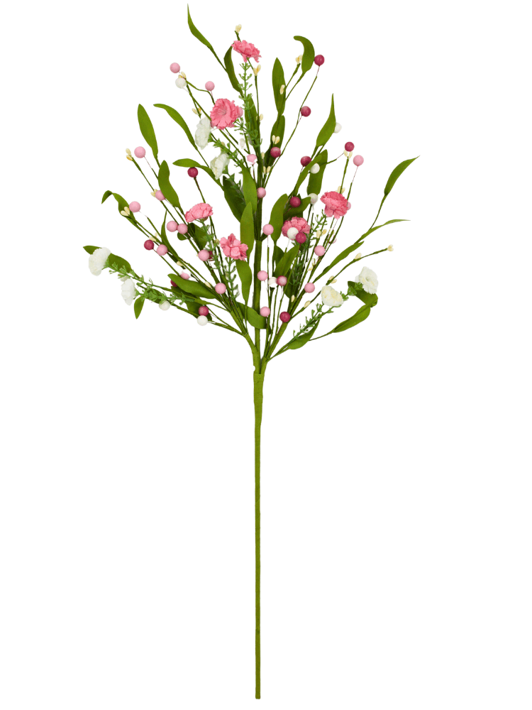 30" Mini Pink and White Carnations with berries and green leaves. These blooms would make beautiful additions to your spring wreaths and florals!