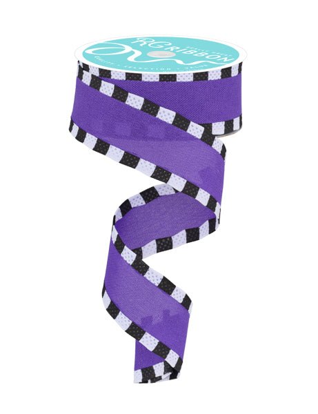 Solid purple linen ribbon with black and white stripe border. 1.5" x 10yds, wired. Twist into a bow or add an accent to your wreath, garland, or other decor! Great for Halloween bows and decor!
