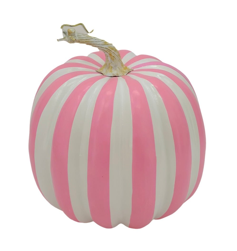 7.5" Pink and white stripe pumpkin. Very lightweight. Add to your Halloween wreaths, swags, florals, and centerpieces, or just place them around the house as they are!