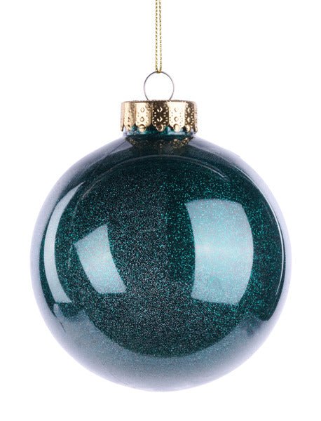 100mm Glass Look Glitter Ball Ornament: Jade Green