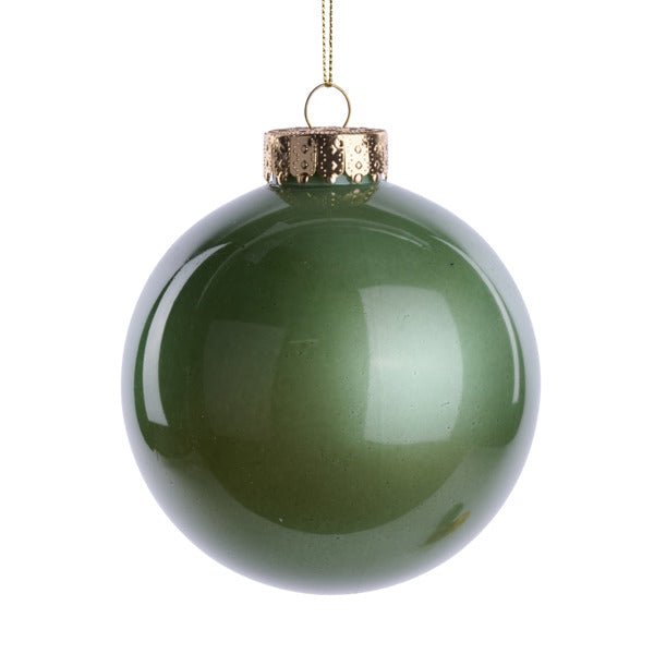 A 100mm (4 inch) lacquer look ball ornament in sage green. Great for decorating your wreaths, trees, garland, etc.