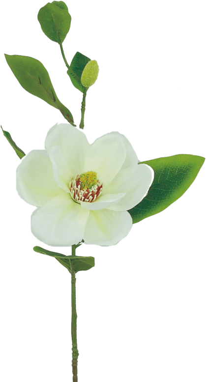 25" White magnolia bloom stem. Beautiful bloom with green leaves. These picks would make beautiful accents! Add them to your wreaths, garland, floral arrangements, etc.