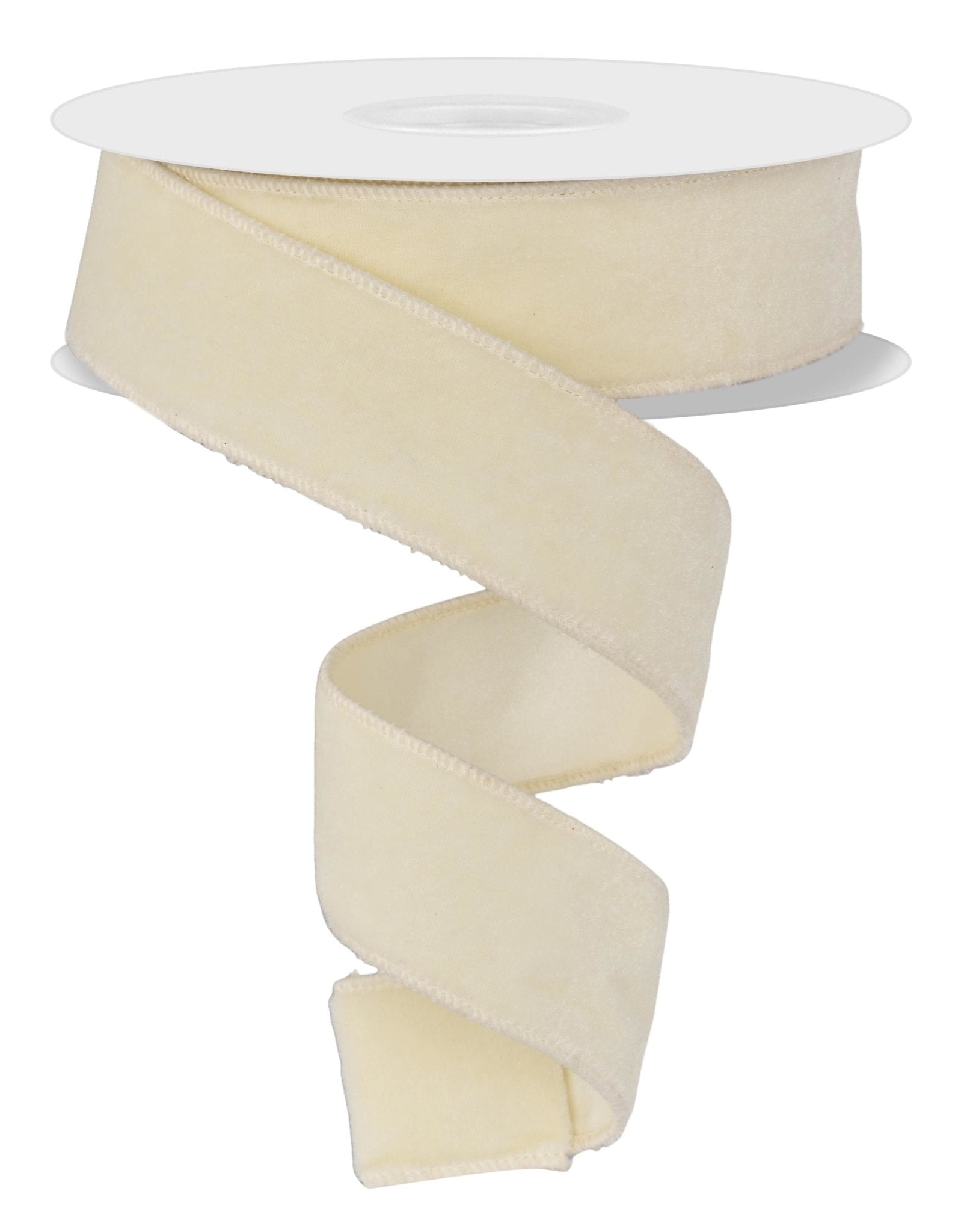 Cream Deluxe velvet ribbon with satin backing. 1.5" x 10yds, wired. This ribbon has a good, strong wire for shaping great bows!