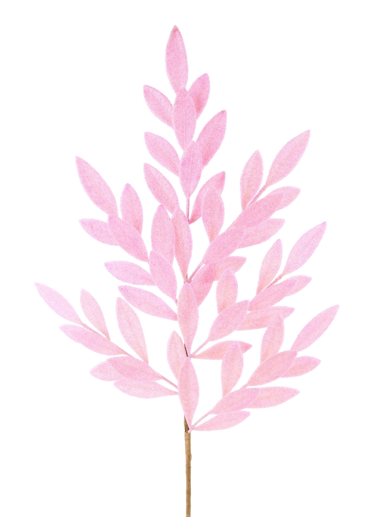 32" Pink glitter bay leaf spray. Elegant accent to add to your Easter or Spring/Summer decor: Wreaths, trees, centerpieces, florals, etc. Pull each stem off and use separately, or use as one full piece. Made of plastic.