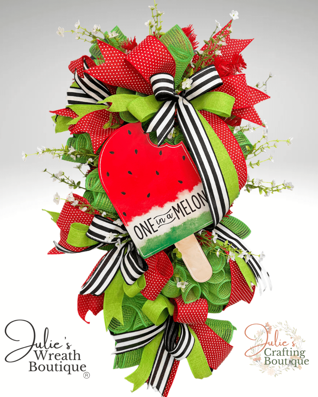 Make a fun Watermelon Swag for Summer! We've teamed up with Julie's Crafting Boutique to bring you this "One in a Melon" Watermelon Swag Kit. Want to learn how to make this swag? Join Julie's Crafting Boutique HERE, and you can join her LIVE each month while she makes a new project!