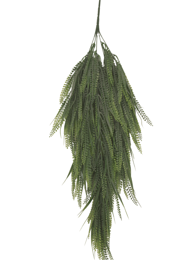 32" Hanging Button Fern Bush. Separate the stems to use individually, or use the entire bush to add draping drama and dimension to your spring wreaths, florals, or mantle!