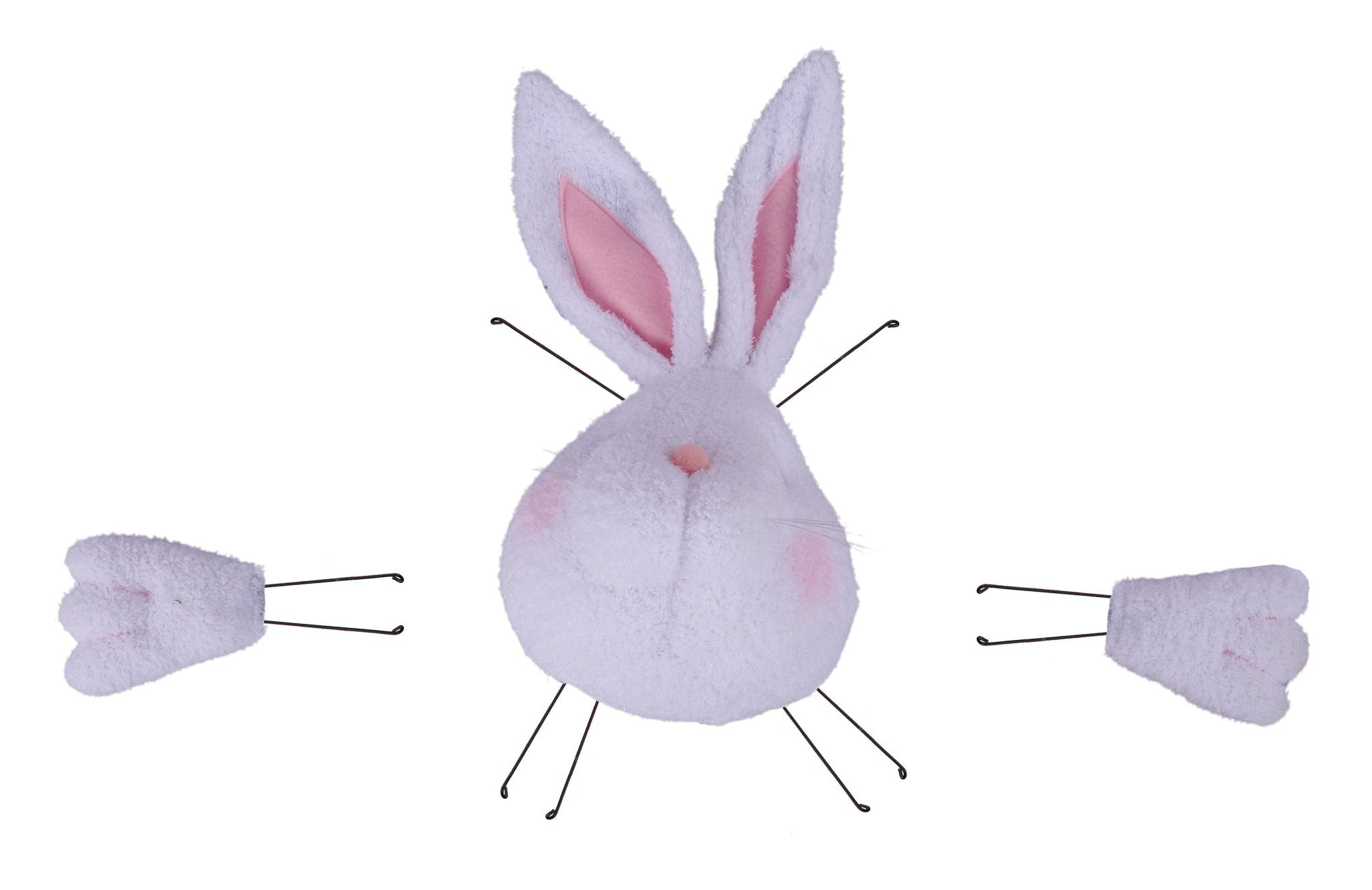 Easter Bunny Head and Paws kit. A cute three piece Bunny kit with a white head and paws. Great decoration for Easter or Spring. Made of Polyester and wire. Wires attached to easily attach to your wreath or craft. Assembled kit is approx. 13.5" high