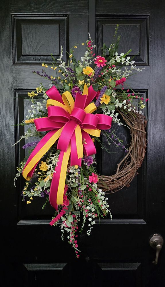 Find the supplies to make your own Bright Spring/Summer Floral Grapevine Wreath Here