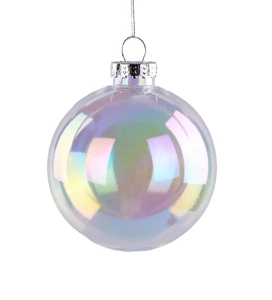 A 120mm (4.75 inch) Seamless clear iridescent plastic ball ornament. Great for decorating your wreaths, trees, garland, etc. Use for every season!