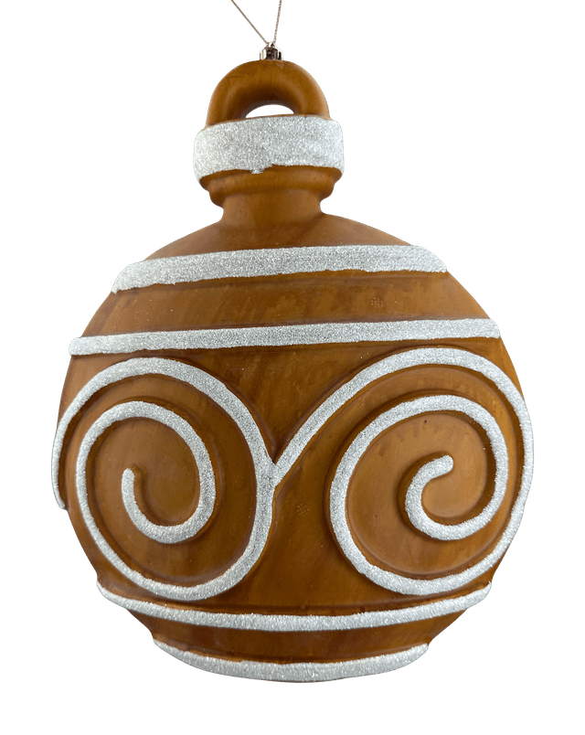 13" Gingerbread Swirl/Stripe Ornament: Brown/White