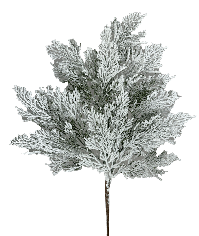 29" Flocked Cypress cedar spray. Perfect accent for Christmas decor and florals, etc.