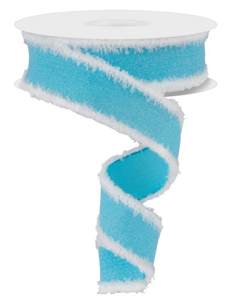 A 1.5 inch wide, 10 yard roll of light blue ribbon with a light, fine crystalized looking glitter, and fuzzy white drift edge. Wired. Twist into a bow or add an accent to your wreath, garland, or other decor! Great for Christmas and winter decor!