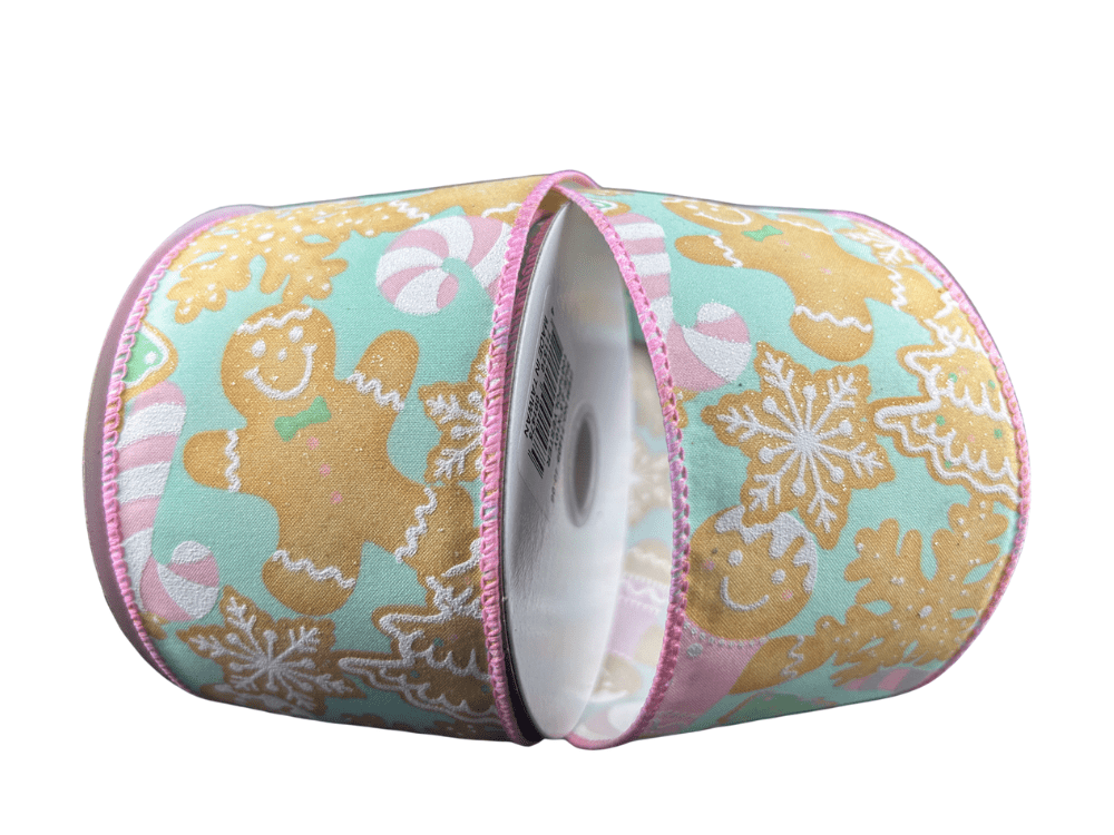 2.5" Gingerbread Cookie Ribbon: Mint/Pink/Tan - 10yds