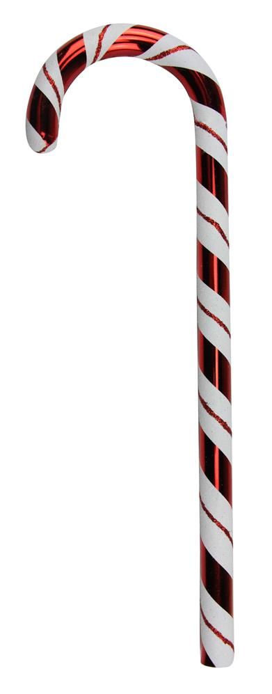12.5" Red and white candy cane ornament. Hang from Christmas tree branches and garlands, add to Christmas Wreaths and decor. Made of platic.