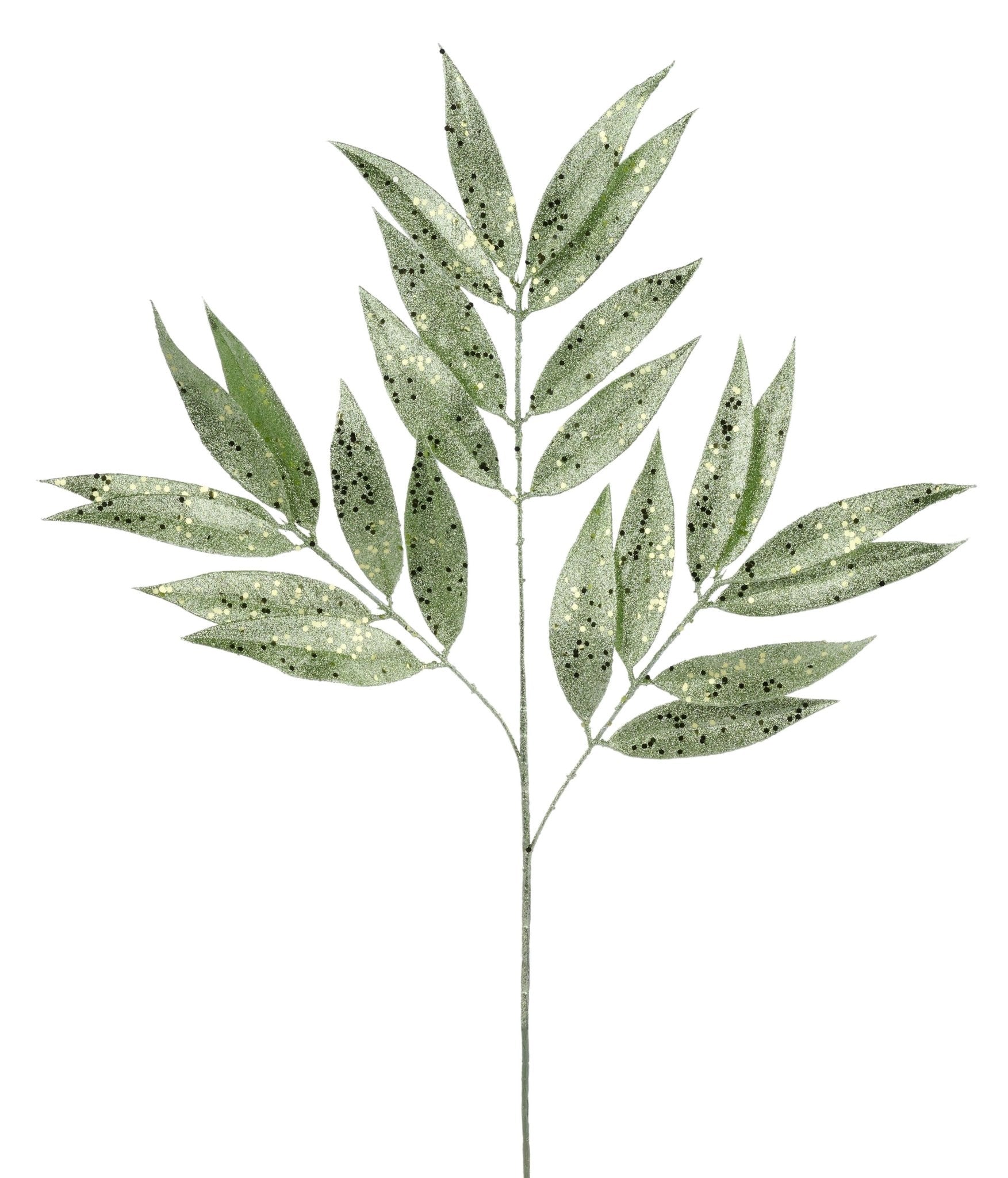 27" Glitter Pointed Bay Leaf Spray: Sage Green
