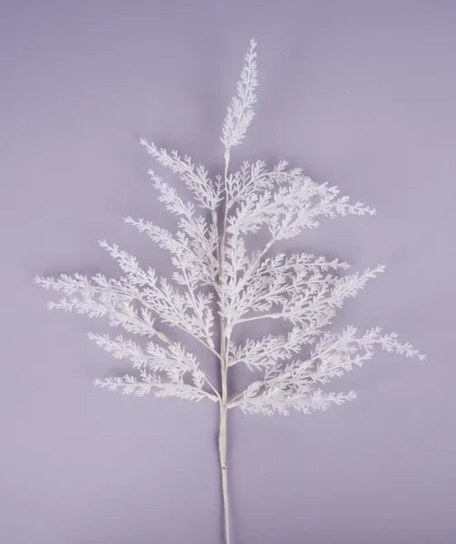 30.5" White glitter cedar spray. Great accent to add to your Christmas decor: Wreaths, trees, centerpieces, florals, etc. Pull each stem off and use separately, or use as one full piece. Made of plastic.
