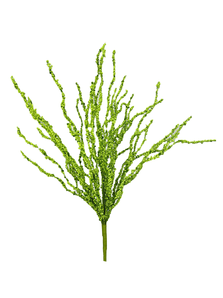24" Spring Twig Bush covered in tiny green colored glitter styrofoam beads. Add to your spring or Easter wreaths, trees, centerpieces, etc.