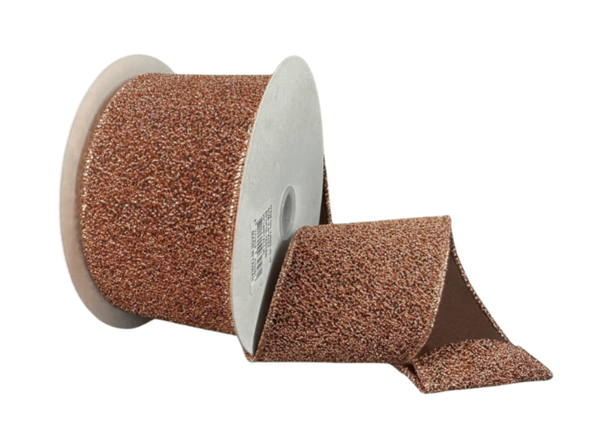 A roll of brown ribbon with fuzzy metallic bronze and black loops, wired. 2.5" x 10YDs. Great for Fall bows and accents!