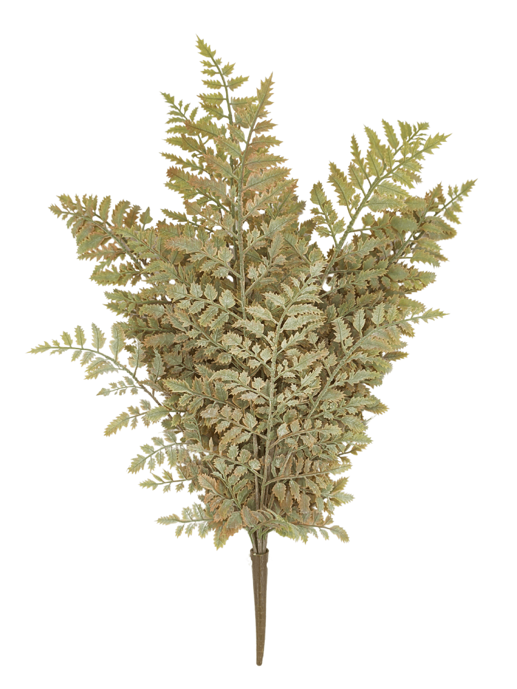 20" Plastic Fern Spray in a lighter green and autumn coloring. Great filler for your Fall wreaths or floral pieces! Use the entire bush, or cut off stems to use separately.