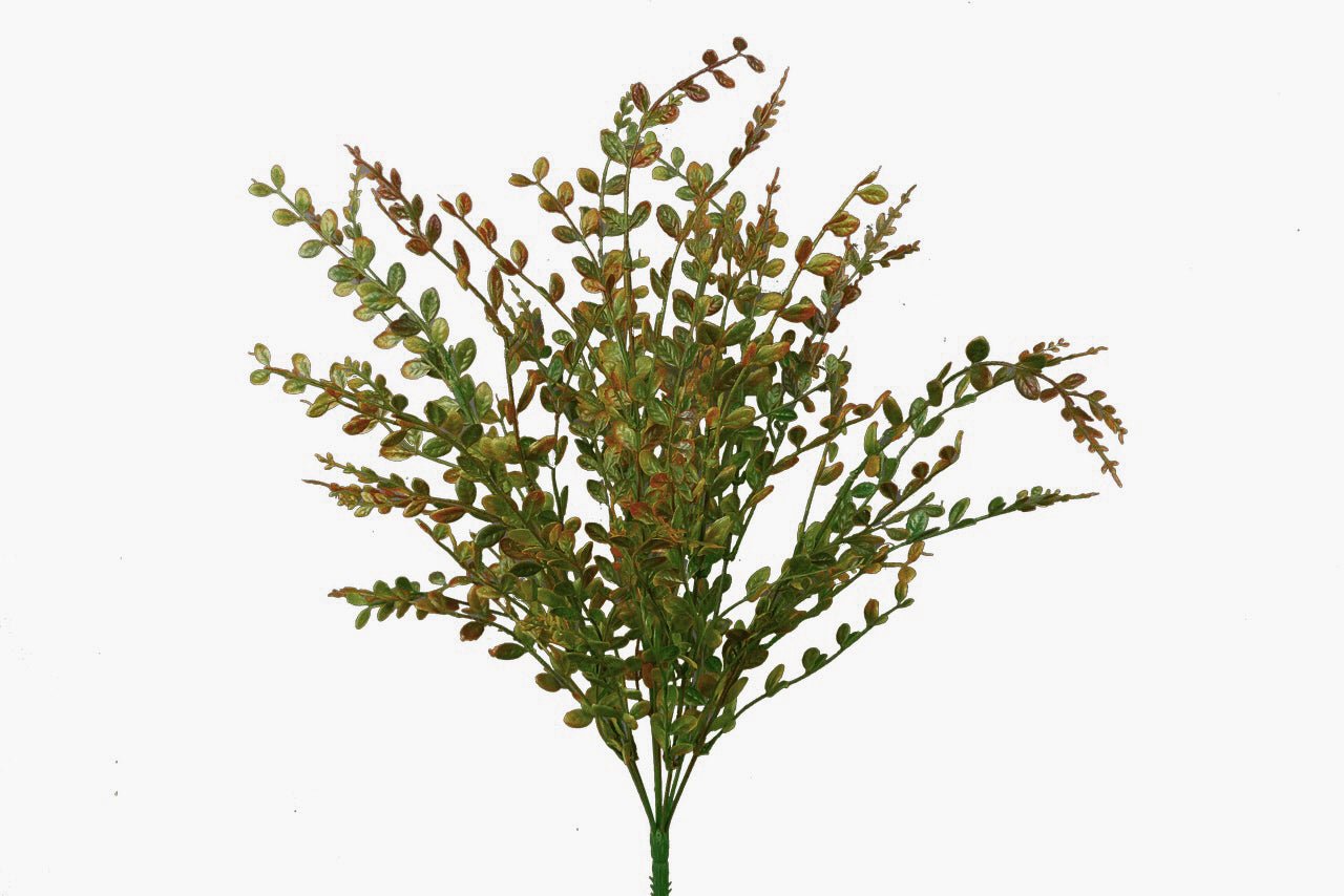 22" Plastic boxwood bush with multiple stems with small leaves. Boxwood is popular to make an entire wreath out of it, or use it accent wreaths, garland, floral arrangements, etc.
