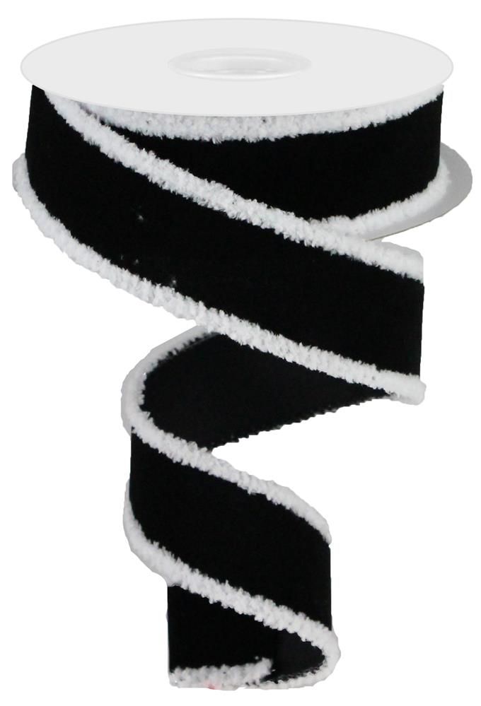 1.5" Black Velvet w/ Snowdrift Trim Ribbon - 10yds