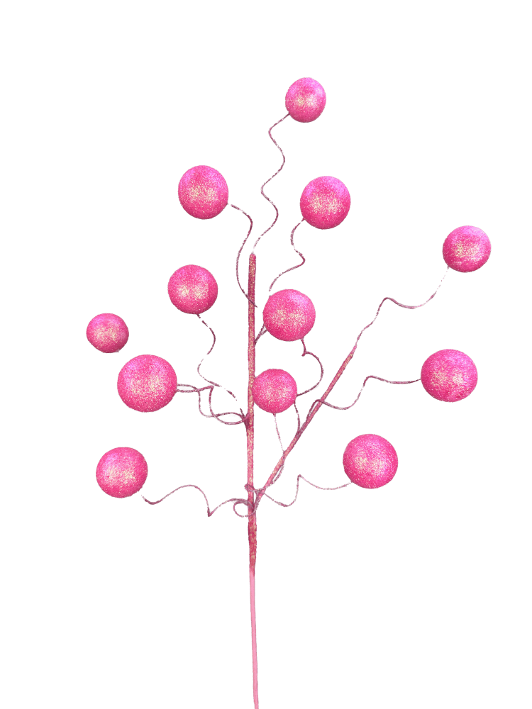 24" Pink Glitter Ball spray. Fun accent to add to Valentine's Day, Easter, and spring wreaths, centerpieces, trees, etc. Remove each stem and use individually, or use the entire spray together.
