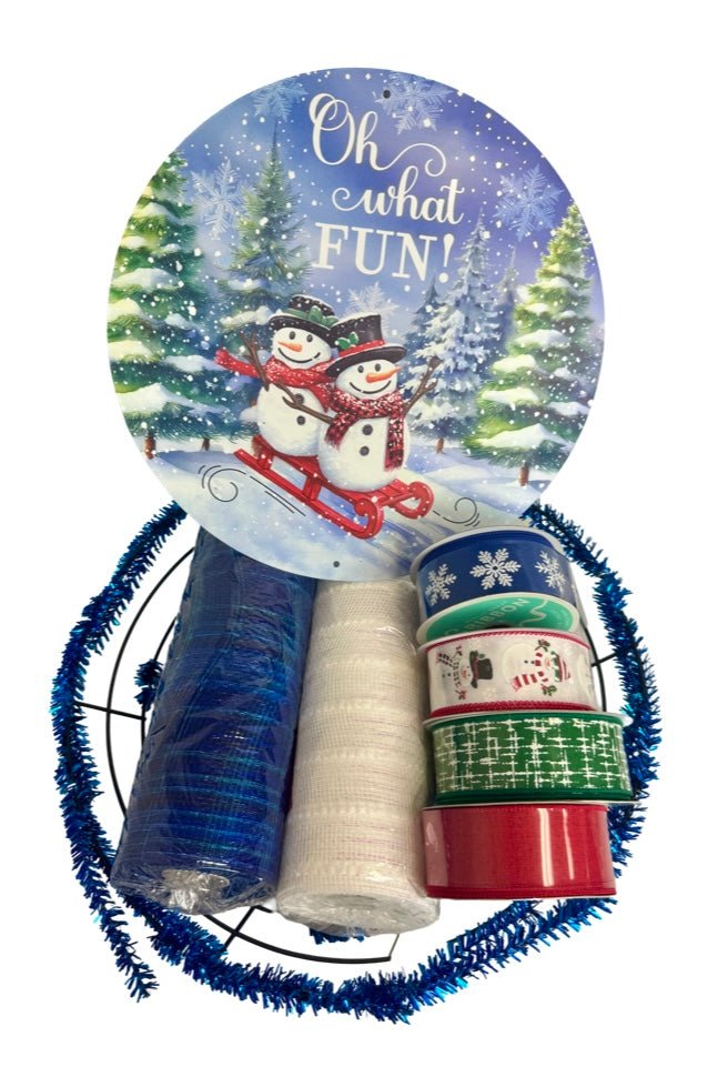 Make your own fun Snowman Wreath with this wreath kit that can be used all winter long! You will receive everything you need to make a Deco Mesh Christmas wreath! Includes 2 rolls of 10" mesh, wreath form, metal sign, and 4 ribbons.