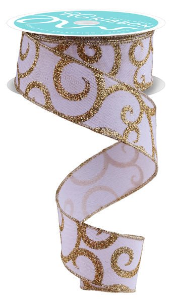 1.5" Glitter Swirl Ribbon: White/Gold - 10yds