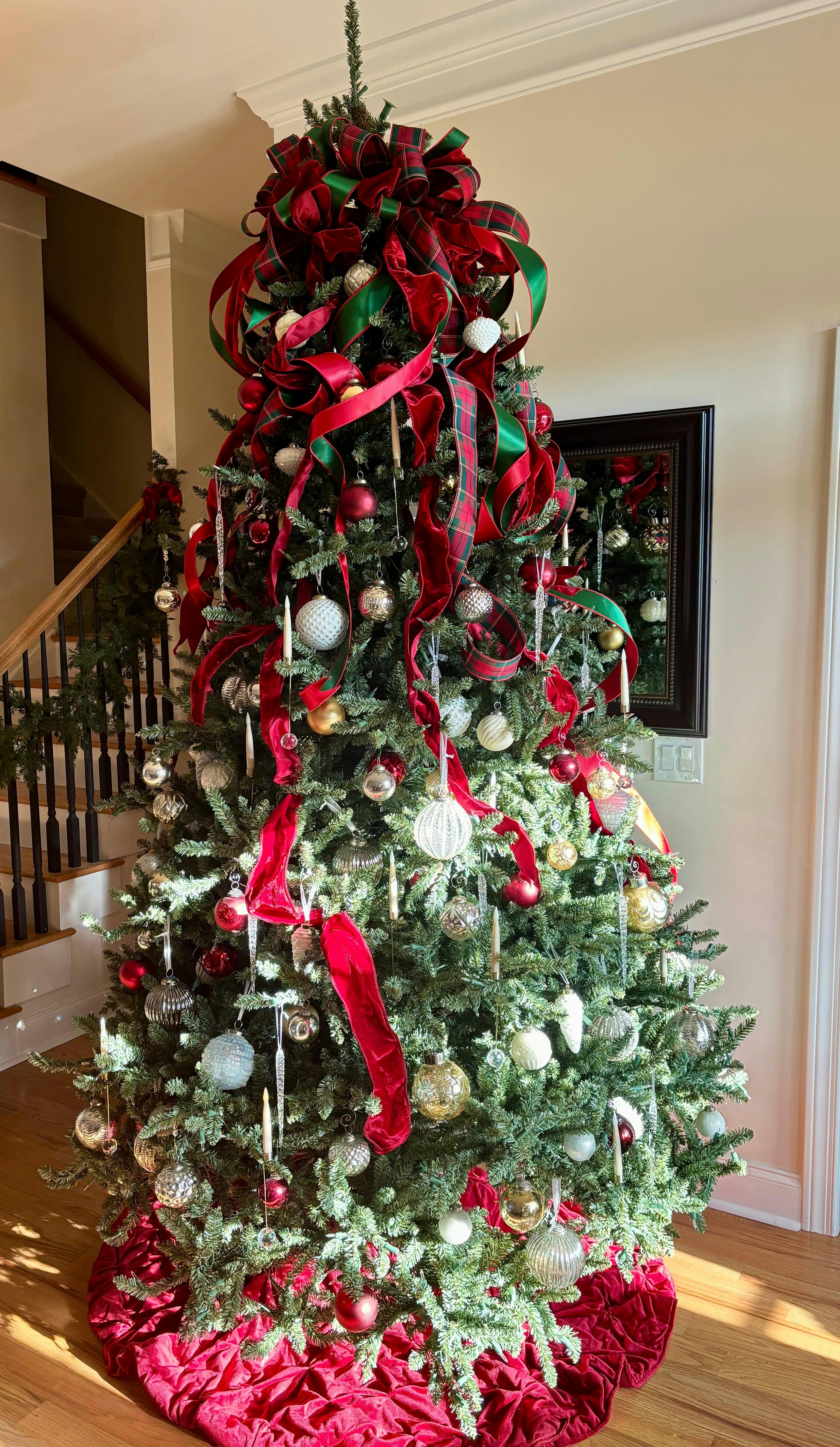 Red satin ribbon fused with solid emerald green satin on the back. 1.5" x 10YDs with strong wire edge. Perfect ribbon for Christmas bows and accents!