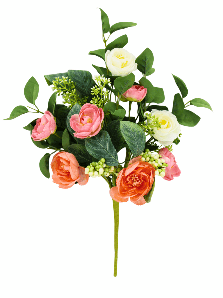17" Mixed Ranunculus Bush: Cream/Pink/Coral