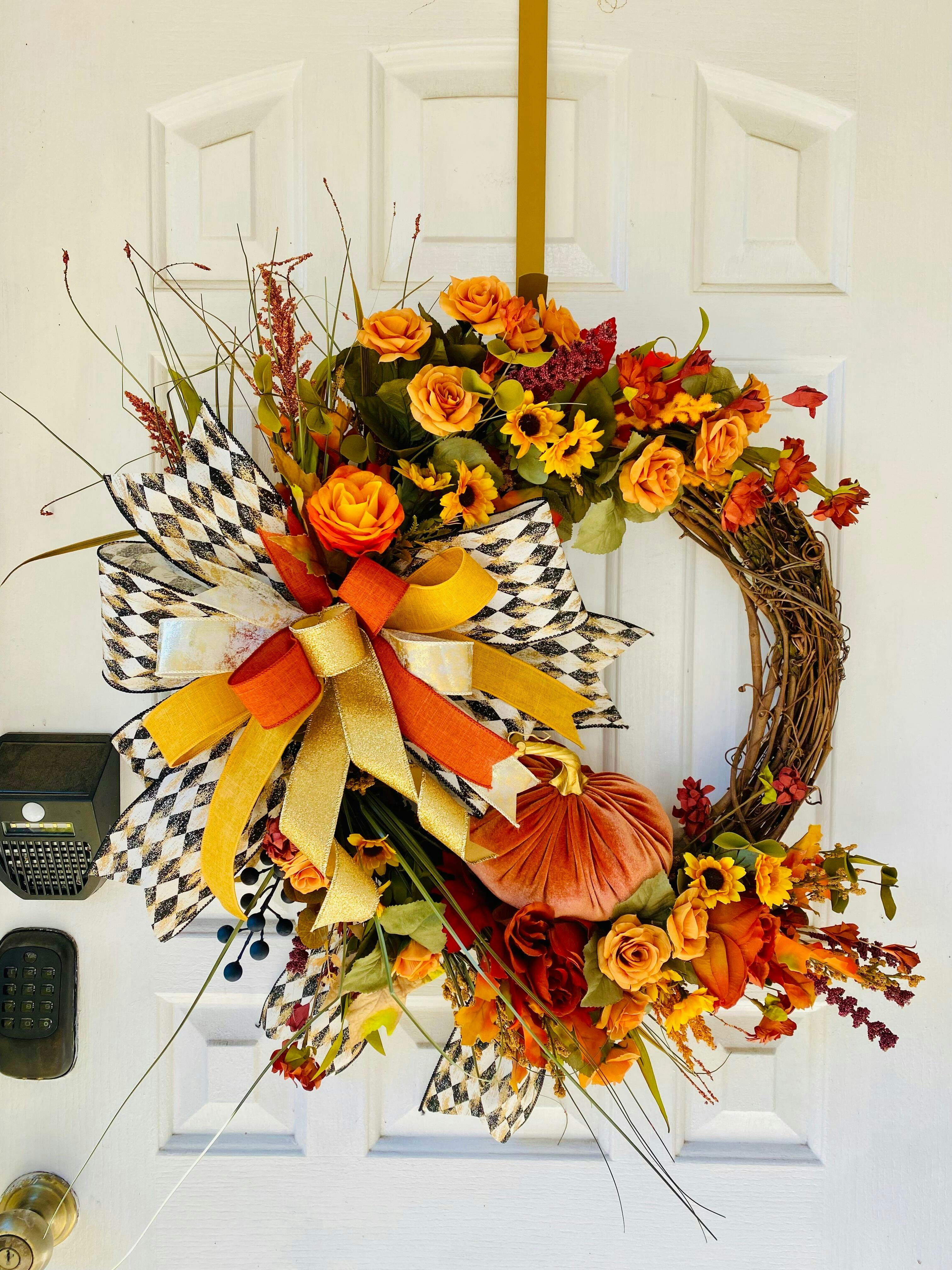 4" x 10yd roll of Faded Black Diamond Harlequin pattern on ivory fabric ribbon with metallic gold splashed throughout. This ribbon is great for Halloween accents! The wired edges make this ribbon perfect for shaping into bows.