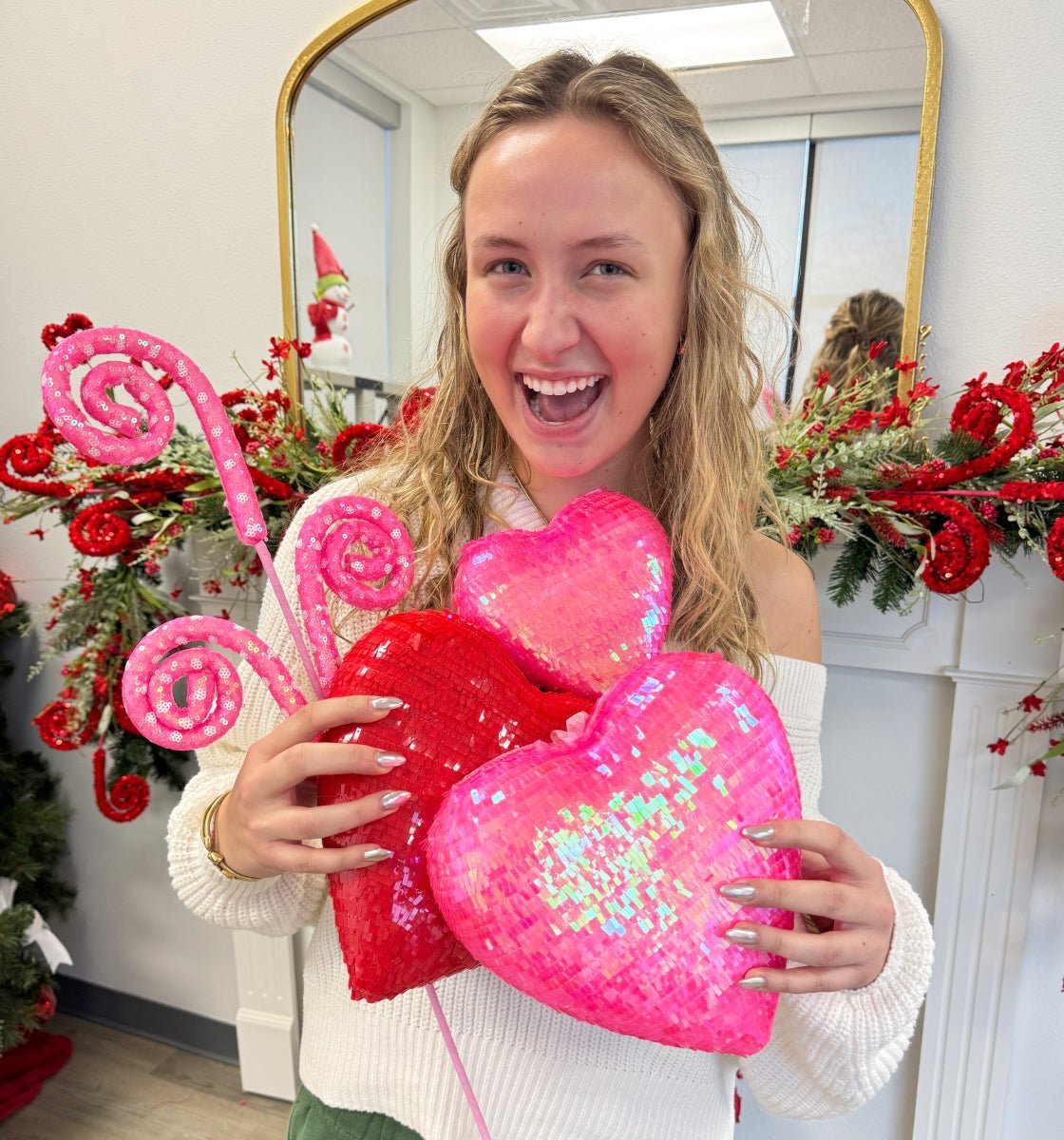 9" Sequin Heart Ornament: Red